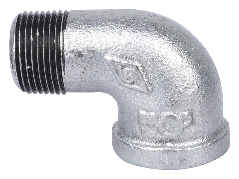 This galvanized 90 degree elbow is used to change direction in piping. It’s suitable for use with water or steam. Flat banded, right hand threads.