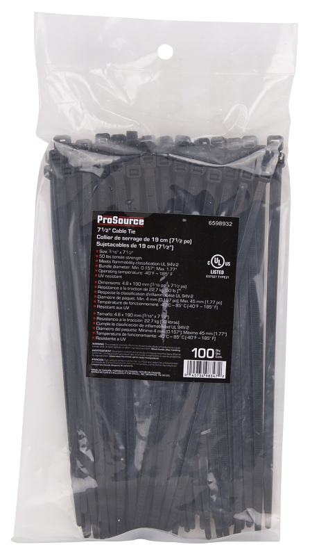 ProSource CV190W-1003L Cable Tie, 45 mm Max Bundle Dia, Self-Lock Locking, Nylon, Black