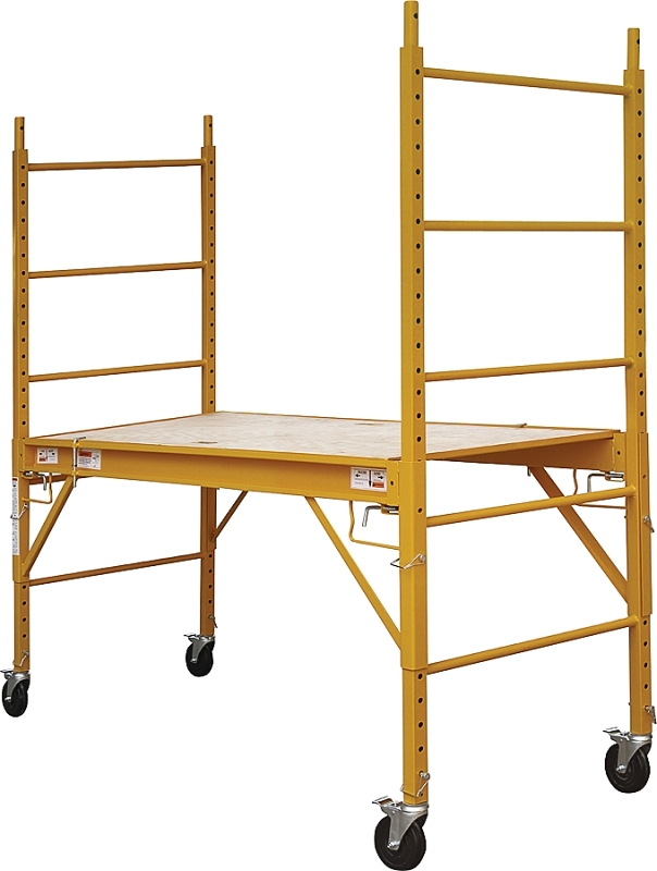 This portable scaffold will enable you to access light fixtures, walls for painting, window cleaning, electrical work, building, remodeling and just about any job that involves vertical surfaces and hard to reach places on a construction project.