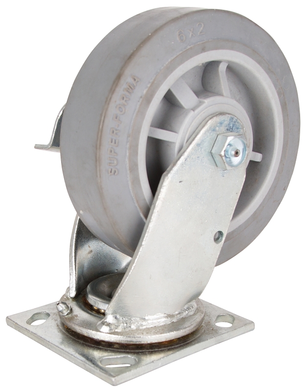 ProSource JC-T06 Swivel/Brake Caster, 6 in Dia Wheel, 2 in W Wheel, Thermoplastic Rubber Wheel, Gray, 500 lb