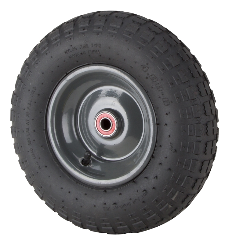 Replacement pneumatic wheel with steel rim measures 13 in dia x 4 in L. Use for garden cart 8952004.