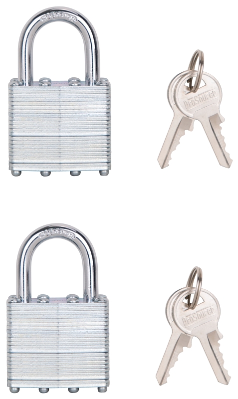 The ProSource padlock is ideal for high security. It has a steel tumbler with a hardened steel shackle and keys are included.