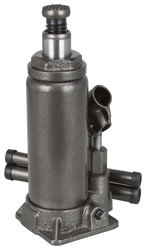 Heavy-duty, wide base for stability, serrated saddle for slip resistance. Adjustable top screw for additional height variation. Precision-machined hydraulic assembly and ram post. Long steel pump handle for easy pumping action and extra leverage. Safety overload valve.