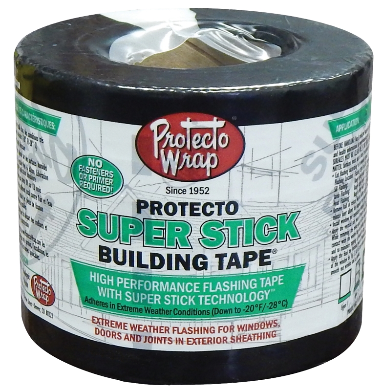 High-performance window and door flashing tape. A high tack, tenacious, durable, peel and stick air/vapor barrier tape system used for sealing PVC and aluminum fin windows and doors, window and door openings and as a full coverage air vapor barrier membrane. It is a high-performance window and door flashing tape designed to be applied down to -20 deg F (-28.88 deg C) without the use of primer or mechanical fasteners on most substrates. (Substrates must be tested for adhesion.) It utilizes a high tack pressure sensitive adhesive (PSA) combined with a high performance facer film. This design provides a full 12-month UV exposure. A greener, cleaner building tape solution that offers no VOC’s, HFCC’s, nor CFC’s. It is non-toxic and non-allergenic. No off-gassing is produced during the manufacture nor installation of this product.