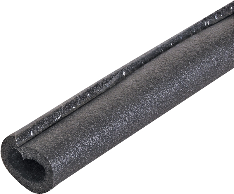 Closed cell polyethylene foam. More thermally efficient. Cuts heat loss and stops pipe sweating. Helps stop freeze-ups. Contains flame retardants. Cut with scissors.