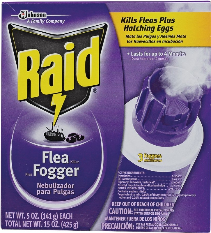 Raid® flea killer plus fogger allows you to treat an entire room with a water-based fog that kills fleas and hatching eggs for up to 4 months.