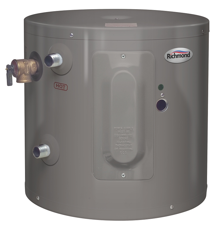 The Richmond® Essential® 20-gal Electric point-of-use Water Heater comes with a 2 years In Home Labor Warranty and has a compact design that can provide an adequate supply of hot water for a single application. The heater includes a 2000 W element and a factory installed temperature and pressure relief valve. The heater can be mounted on a wall for convenient installation.