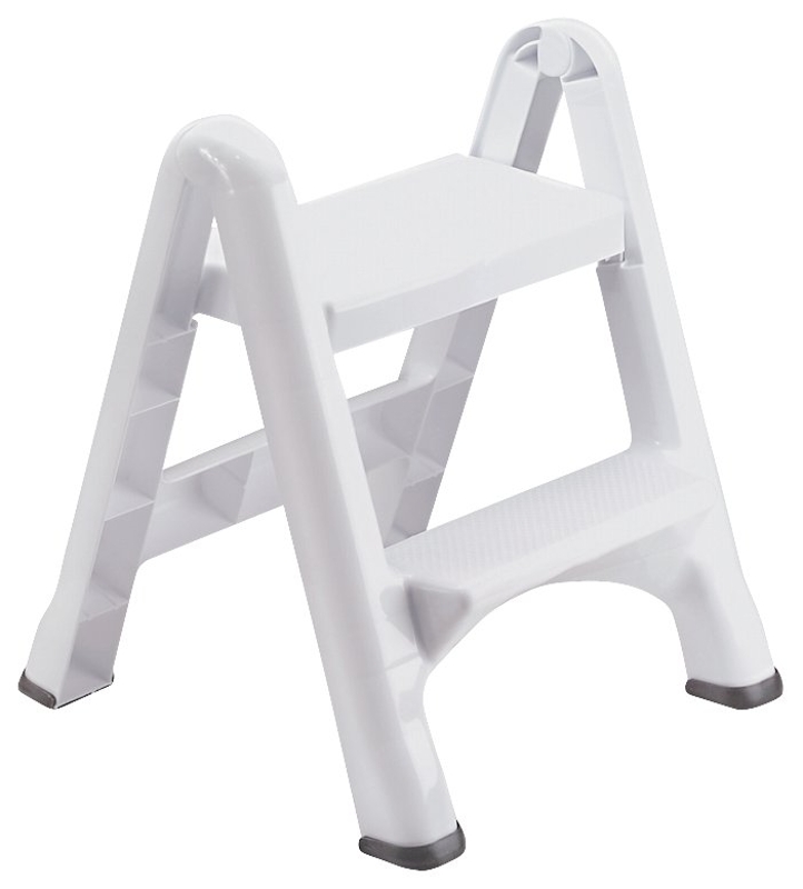 This step stool is easy to set up or fold down for convenient and lightweight carrying and enhanced mobility. Its slim width when folded takes up minimal storage space. It stands upright on its own when folded. The stool has four skid-resistant foot pads and is resistant to rust and dents.