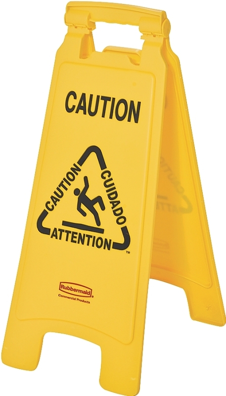 Lightweight and versatile, injection-molded. Makes a heavy statement about safety. Warning message printed in English, French, German and Spanish for effective communication to broad audiences. Folding design for convenient storage or transport on janitors cart. 26-1/2 in H x 11 in W x 1-1/2 in D when closed, 25 in H x 11 in W x 12 in D open. Yellow.