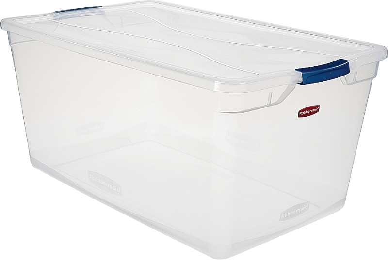 Clever Store containers have a straight wall design that maximizes storage space holding up to 14% more than other containers in the same space. The handles and lid have a square edge design to fit efficiently into cabinets, closets and other areas. The recessed lid ensures superior stacking while the latches lay flat for easy stacking.