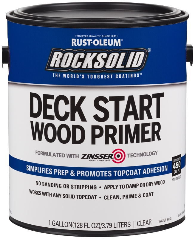 This groundbreaking clear primer completely changes the preparation process for deck resurfacing. Traditional preparation before applying a deck stain requires tedious process of stripping and sanding to prepare the wood. RockSolid deck start wood primer simplifies preparation and saves time by eliminating the need for stripping and sanding. Simply clean the surface, wait 30 min and remove standing water, then apply one coat of the primer. The deck is now ready to be coated with any solid color coating.