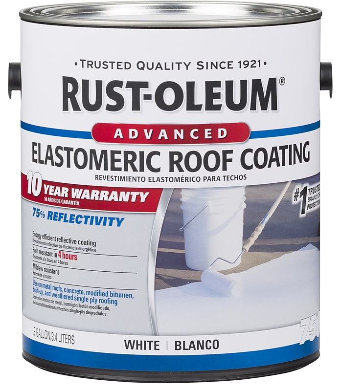 Rust-Oleum® 750 elastomeric roof coating provides a high initial reflectivity value of 75%, energy efficiency, long term durability and excellent resistance to weathering and dirt pick-up. This elastomeric roof coating is formulated to meet and/or exceed the standards established in ASTM D 6083. Rust-Oleum® 750 elastomeric roof coating waterproofs and weatherproofs metal, weathered single ply membranes as well as smooth surface asphalt built-up and modified bitumen roofing substrates.