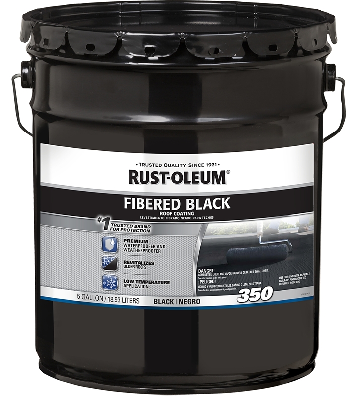 Rust-Oleum® 350 fibered black roof coating is a high quality, cold process, asphalt based roof coating formulated to protect against the detrimental effects of the environment. It is designed for the waterproofing, weatherproofing and maintenance of smooth asphalt built-up and modified bitumen roofing membranes.