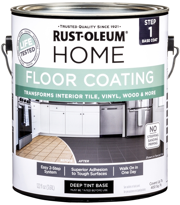 Rust-Oleum® home base-coat is step one of two of this extremely durable interior floor coating system. This easy to use system can transform the look of any outdated floor without the cost of replacing it. The base-coat brings a variety of color options you can choose from to refresh your space just by painting your floor. It can be used on tile, wood, laminate, concrete, vinyl, linoleum and more. Apply the base-coat in your desired color and then apply the required top coat in one of two sheens.