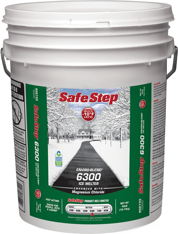 Safe Step Enviro-Blend 6300 is safer to people, pets and vegetation when used as directed, but has a melting power that outperforms other ice melter blends. The patented formula contains our powerful melting catalyst, MG 104®, which helps prevent refreezing up to 2.5X longer than conventional products.