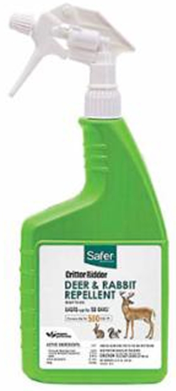 Get defense from destructive animals with a long-lasting repellent that offers two layers of protection. Safer® Brand Critter Ridder® deer and rabbit repellent repels for up to 90 days by triggering both senses of scent and taste, making it double-trouble for pests. The formula is fast-acting and proven effective in keeping animals away from protected areas.
