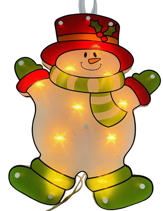 Santas Forest 36832 Snowman Window Decal, 1 in W, PVC, White, Green, Red, Mini String Bulb