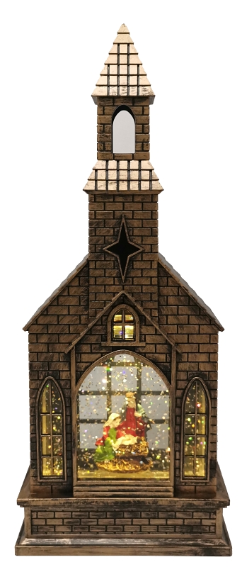 Santas Forest 92814 Glistening Church, 13-1/2 in H, Christmas, Plastic, Gold, Internal Light/Music: Internal Light