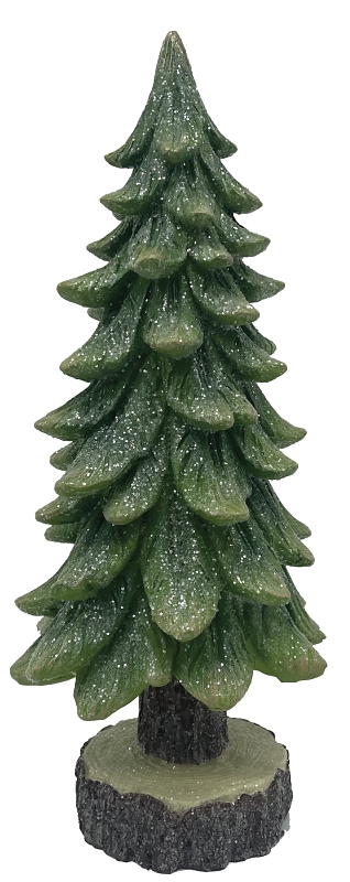 This 14 in sparkling, green resin tree glitters like new fallen snow on a winter’s day and makes a beautiful addition to your holiday decor.
