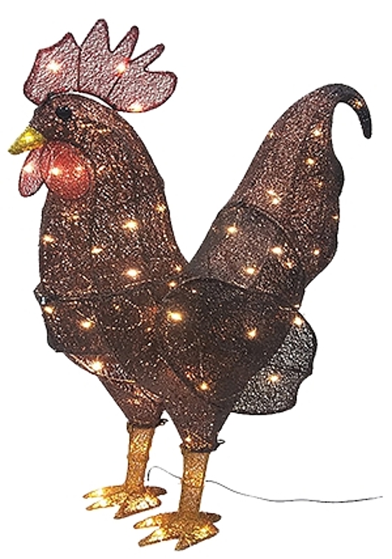 Santas Forest 62636 LED Rooster, 13 in W, Mesh Fabric/Metal Frame, Red, Mini Bulb