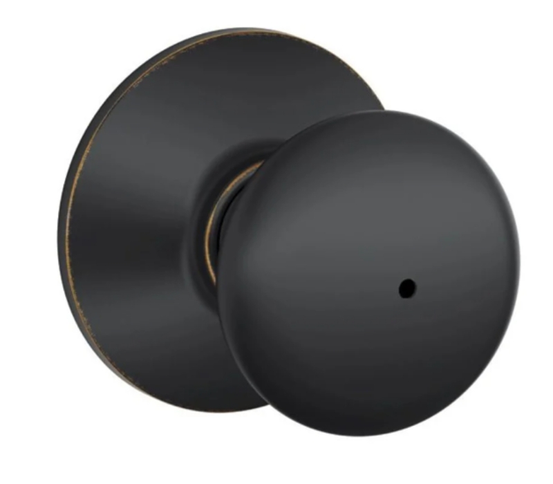 Schlage Plymouth Series F40VPLY716 Privacy Lockset, Round Design, Knob Handle, Aged Bronze, Metal, Interior Locking