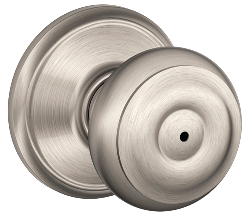 Schlage F Series F40VGEO619 Privacy Lockset, Round Design, Knob Handle, Satin Nickel, Metal, Interior Locking