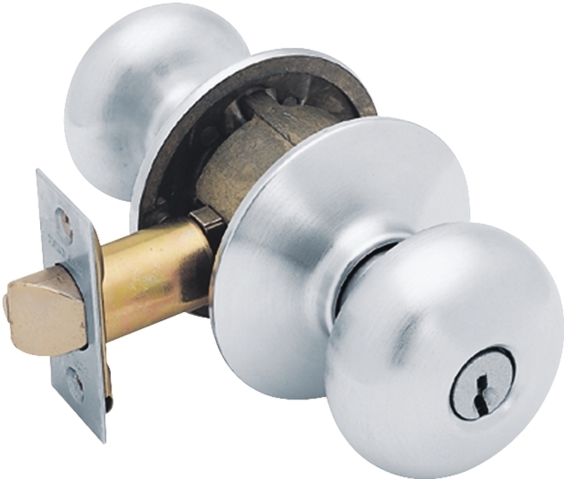 Plymouth knob keyed entry lock in satin chrome.