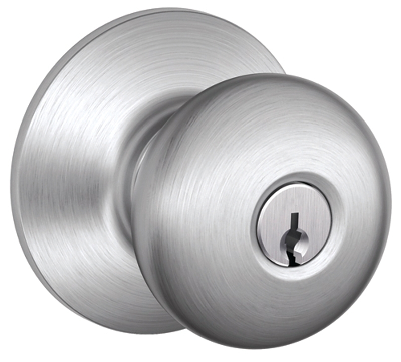 Light commercial Plymouth knob keyed entry lock in satin chrome.