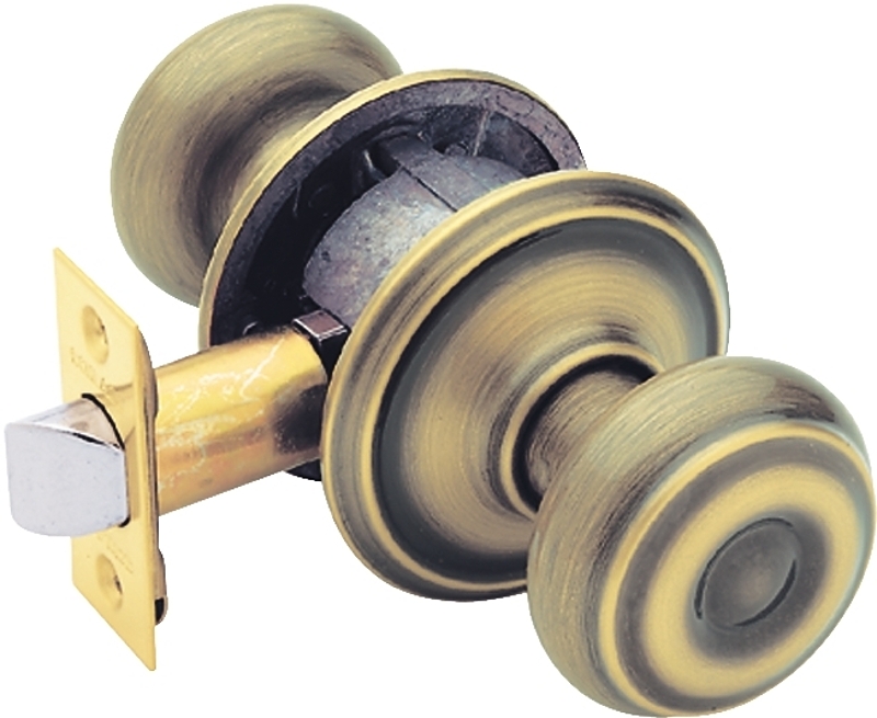 Schlage Georgian Series F10VGEO609 Passage Knob, Metal, Antique Brass, 2-3/8, 2-3/4 in Backset, 1.63 x 2.25 in Strike