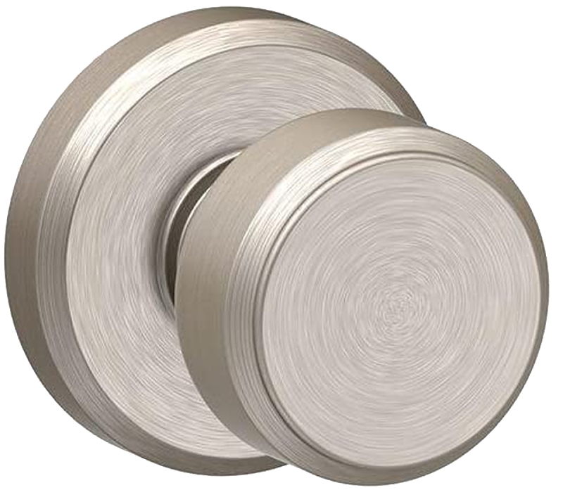 Schlage F Series F10VBWE619 Passage Knob, Metal, Satin Nickel, 2-3/8, 2-3/4 in Backset, 1-3/8 to 1-3/4 in Thick Door