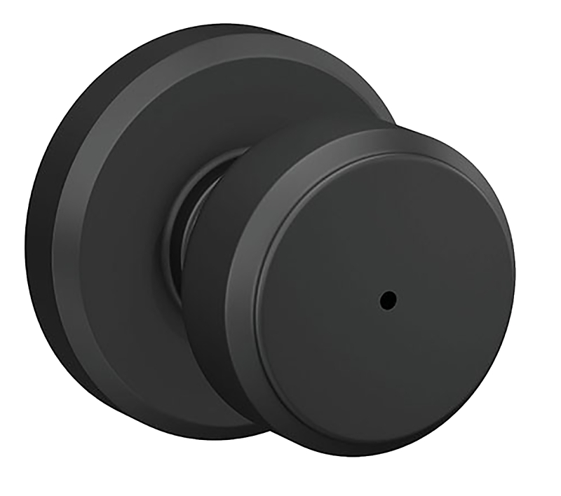 Schlage F Series F40VBWE622 Privacy Lockset, Round Design, Knob Handle, Matte Black, Metal, Interior Locking