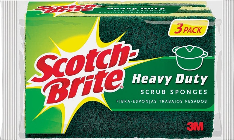 Scotch-Brite HD-3 Scrub Sponge, 2-3/4 in L, 4-1/2 in W, 0.6 in Thick, Cellulose/Synthetic Fiber, Green