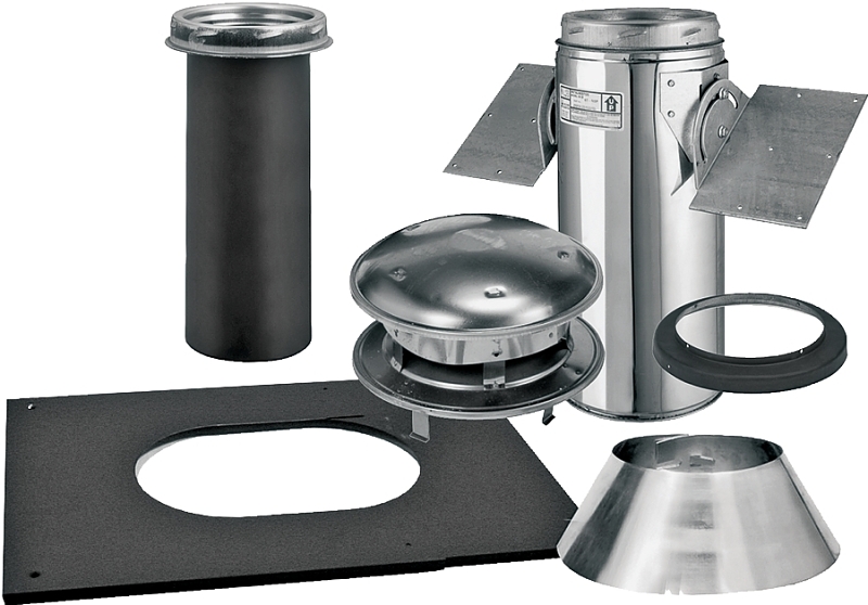 The Pitched Ceiling Support Kit provides all necessary parts for a complete installation with the exception of the required insulated pipe lengths and adjustable flashing (AF). Selection of the Adjustable Flashing is determined by the pitch of your roof.
