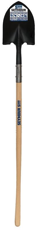 Seymour Shovel, Double-Rivet Open Back Blade, 9-1/2 in W Blade, 11-1/2 in L Blade, Steel Blade, Long Handle, Hardwood Handle, 48 in L Handle, 59 in OAL, Material Gauge: 14 ga