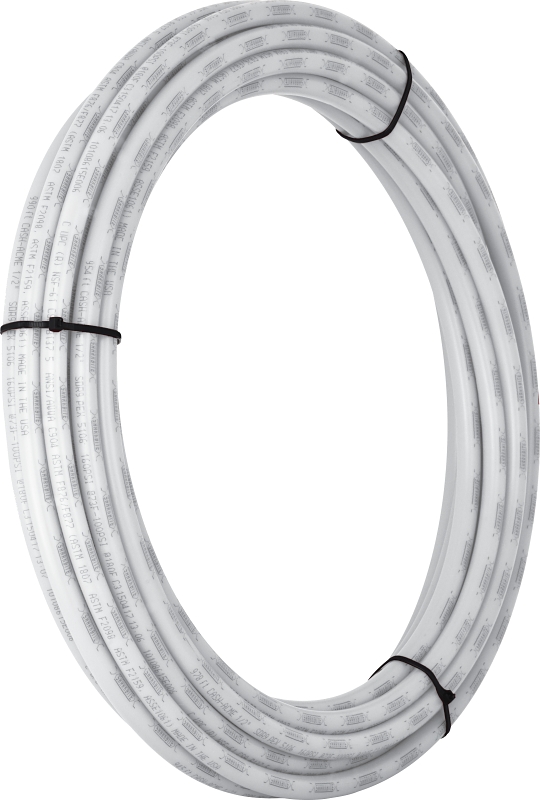 Cross-linked polyethylene pipe approved for use in residential and commercial installations. Has the flexibility to bend around corners, reducing the number of connection points needed.