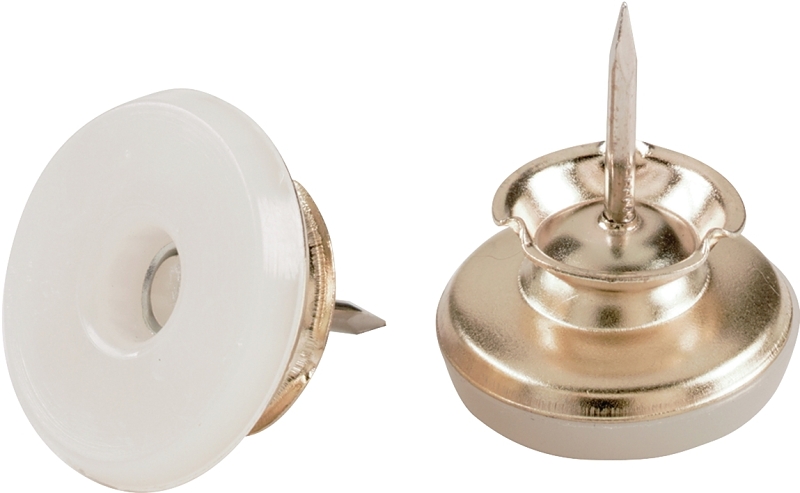For wooden furniture legs on stools, chairs and tables. Allows furniture to move smoothly over floors without damaging it. Brass-plated with swivel plastic base and built in nail.