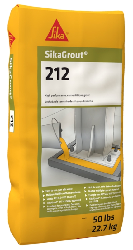 SikaGrout®-212 is a one-component, ready to mix, free flowing, non-shrink, cementitious grout with a unique 2-stage shrinkage compensating mechanism.