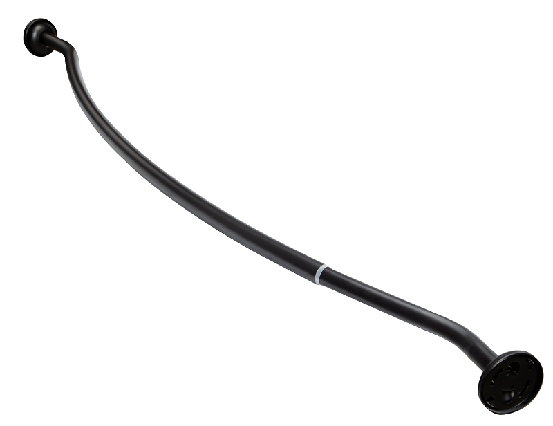 Simple Spaces curved shower curtain rod is matte black and adjustable from 52 to 72 in.