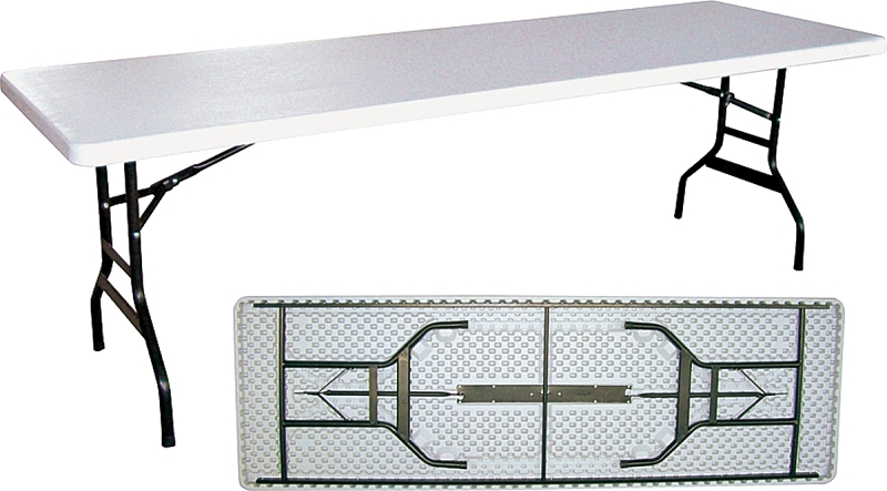 With this multi-utility banquet table you can be rest assured that you will have enough surface space for any function and take the stress out of hosting your next gathering. This rectangular bi-fold folding table is 8 feet long and is beneficial in a multitude of settings that include banquet halls, conference centers, cafeterias, schools and in the home. Use as a temporary seating solution or setup for everyday use. This plastic folding table comfortably seats up to eight adults while ensuring plenty of legroom. Speed up the time it takes to set-up and tear-down wedding receptions, graduation parties, banquets, buffets and other events with this folding table. Whether you’re hosting an indoor or outdoor gathering, the smooth design is easy to wipe clean. When using for outdoor events store indoors to protect the frame from extreme moisture. The table legs fold under for storage while the attached carrying handle provides better portability. This table is commercial grade to withstand everyday use in the hospitality industry.