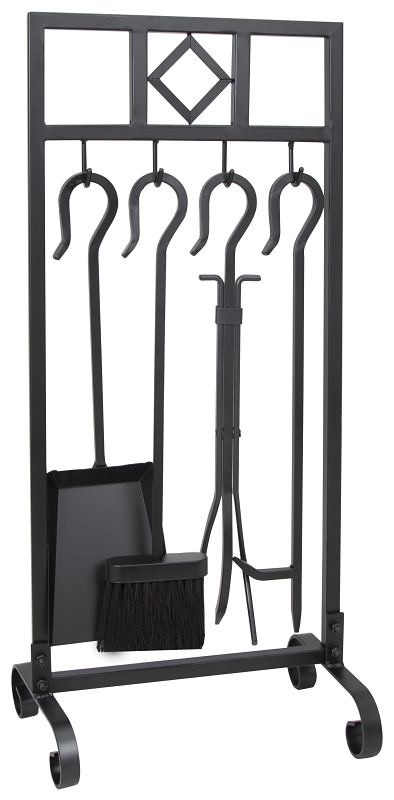 This tool set has all you need to tend a fire, made of heavy-duty construction, the black finish and square handles create a set that will look sleek by your fireplace. Height: 32-1/4 in.