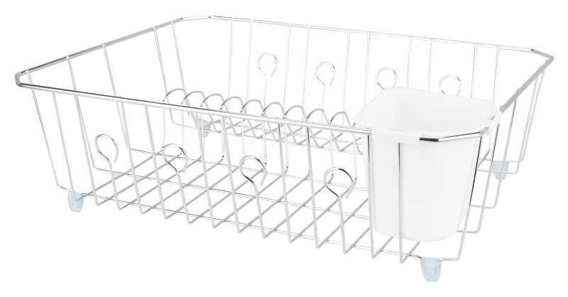 The Simple Spaces dish drainer with cutlery basket with steel wire frame measures 18 in L x 13-1/2 in W x 5-1/2 in H.