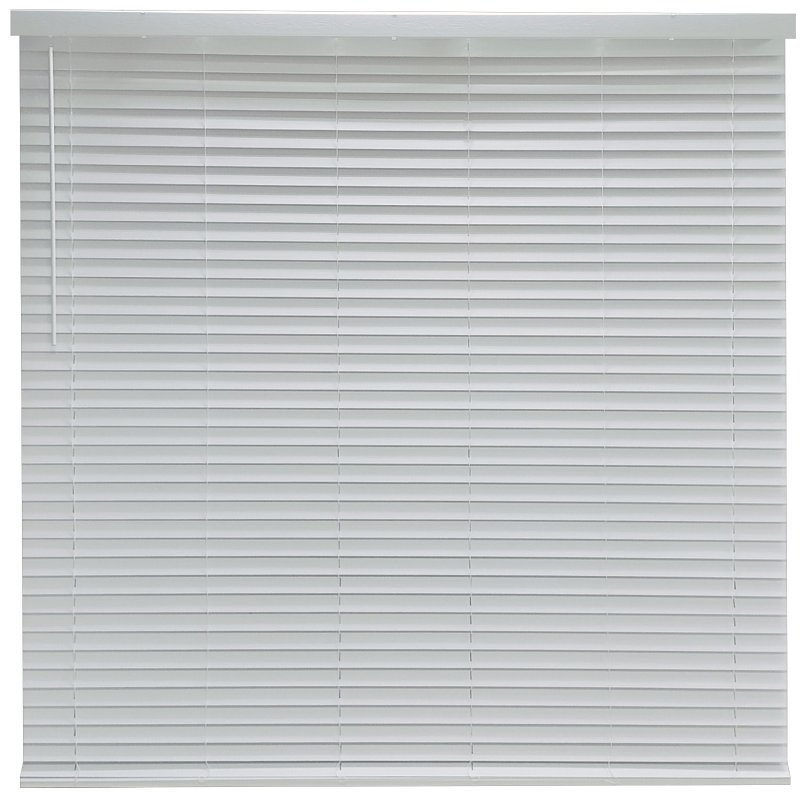 Simple Spaces mini blind is made of faux wood, White. Size: 72 in L, 72 in W. Cordless operation allows easy push/pull of the bottom rail for lifting up and lowering of the blind. Wand control used to open and close the slats. Includes mounting hardware and instructions.