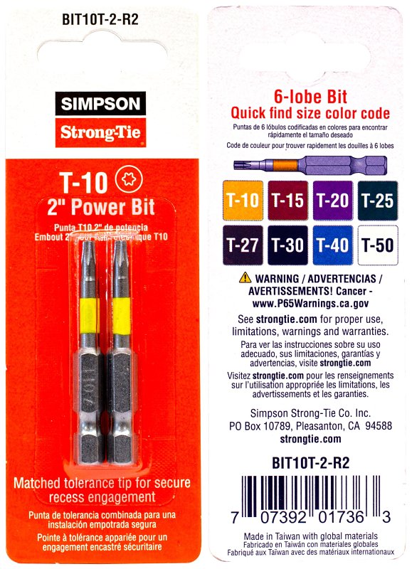 Simpson Strong-Tie® driver bits are now color-coded to make size and type selection easier! Available in 6-lobe, square and hex drive, these new driver bits have color bands that make choosing the correct size for your fasteners a breeze. Our industrial-grade driver bits are specially designed for a secure fit with Simpson Strong-Tie® fasteners and will outperform sub-standard bits commonly prone to cam-out and stripping. Studies have shown that magnetized hex driver bits tend to collect metal debris inside the hex bit recess. This metal debris can cause poorly fitted or seated hex-head screws within the driver bit and can cause installation or screw driving issues. Simpson Strong-Tie® hex driver bits contain a non-magnetized retainer ring that helps secure the screw head in the hex bit recess, allowing for a more secure drive.