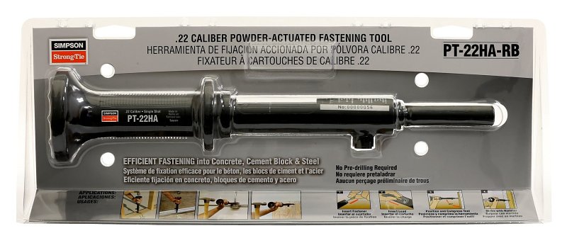 The PT-22HA is a small, powder-actuated direct fastening tool. The design includes a large strike point and comfortable grip, making it ideal for a range of DIY projects. This easy-to-use tool is hammer-activated and engineered for low maintenance.