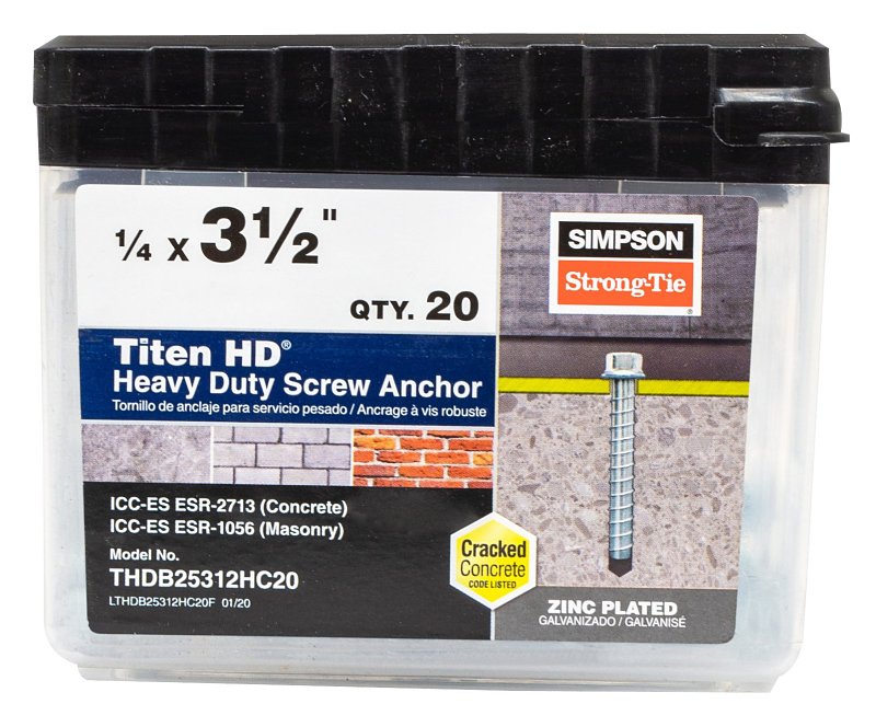 Simpson Strong-Tie Titen HD THDB25312HC20 Heavy-Duty Screw Anchor, 1/4 in Dia, 3-1/2 in L, Carbon Steel, Zinc Plated