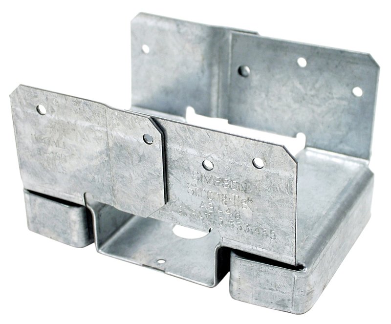 The ABA is designed to attach wooden posts to existing concrete. The built-in 1 in stand-off of this adjustable post-base helps to prevent rot at the end of the post. The ABA has a slotted anchor hole in the base for adjustability and attaches to the post with nails or Strong-Drive® SD Connector screws. This versatile post-base makes a cost-effective option for securing a post to the foundation. This post-base is available in model sizes for double 2X, 4 x 4, 4 x 6 and 6 x 6 lumber, both nominal and rough. The new double 2X size can be used for installing a structural post consisting of two 2 x 4 studs nailed together as well as for securing double 2X beams to a footing for ground-level decks.