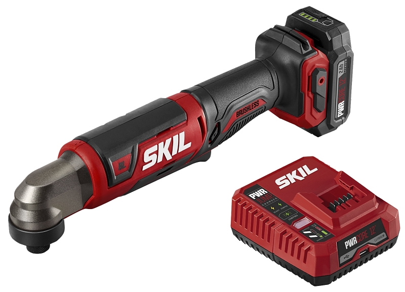 Skil Right Angle Impact Driver, Tool Only/Battery Included: Battery Included, 12 V, Drive Size: 1/4 in, Battery Capacity: 2 Ah, Drive Type: Hex, Impacts per Minute: 3750 ipm, 0 to 2700 rpm, Includes: (1) PWRCore 12 2 Ah Lithium Battery, (1) PWRJump Charger, Motor Type: Brushless, Control Type: Variable Speed, Battery Type: Lithium-Ion