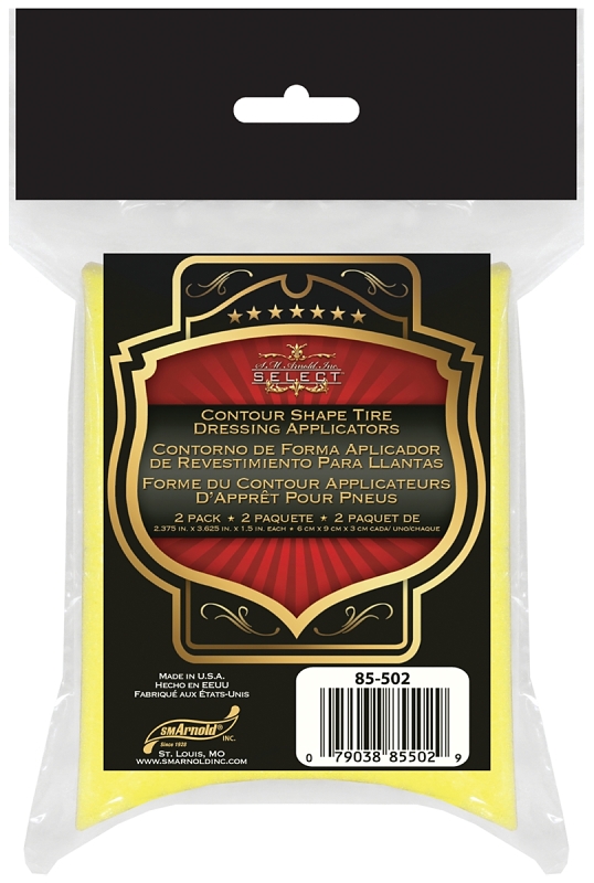 Conforms to the shape of tires. Non-absorbing foam evenly spreads tire dressing on the tire, using less tire dressing. The bottom of the curve of the applicator fits between the tire and rim eliminating tire dressing from getting on the rim. Also excellent for low-profile tires. Washable and reusable. 2-3/8 in x 3-5/8 in x 1-1/2 in.