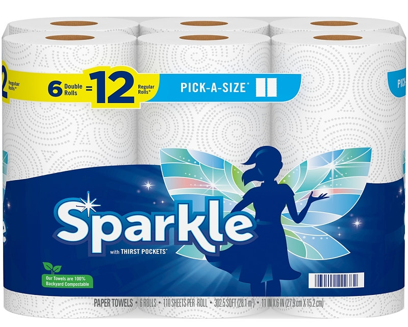 Sparkle Paper Towel, White, 4.85 in L, 11 in W, 2 Plies