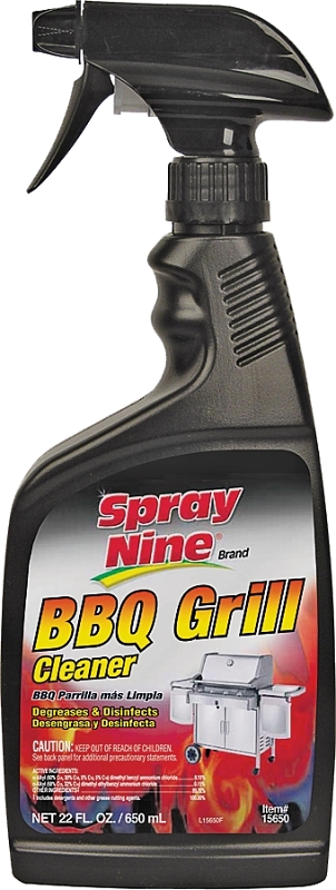 Spray Nine® BBQ grill cleaner dissolves grease, fat and burnt-on food quickly and easily. Also disinfects grills, cooking surfaces, food preparation areas and utensils. Spray Nine BBQ grill cleaner kills germs & bacteria including salmonella and E. coli and controls mould and mildew.